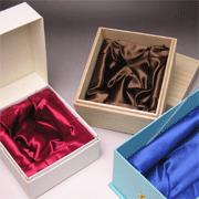 布貼の台紙が付いた高級化粧箱や桐を主体に製作された木箱。